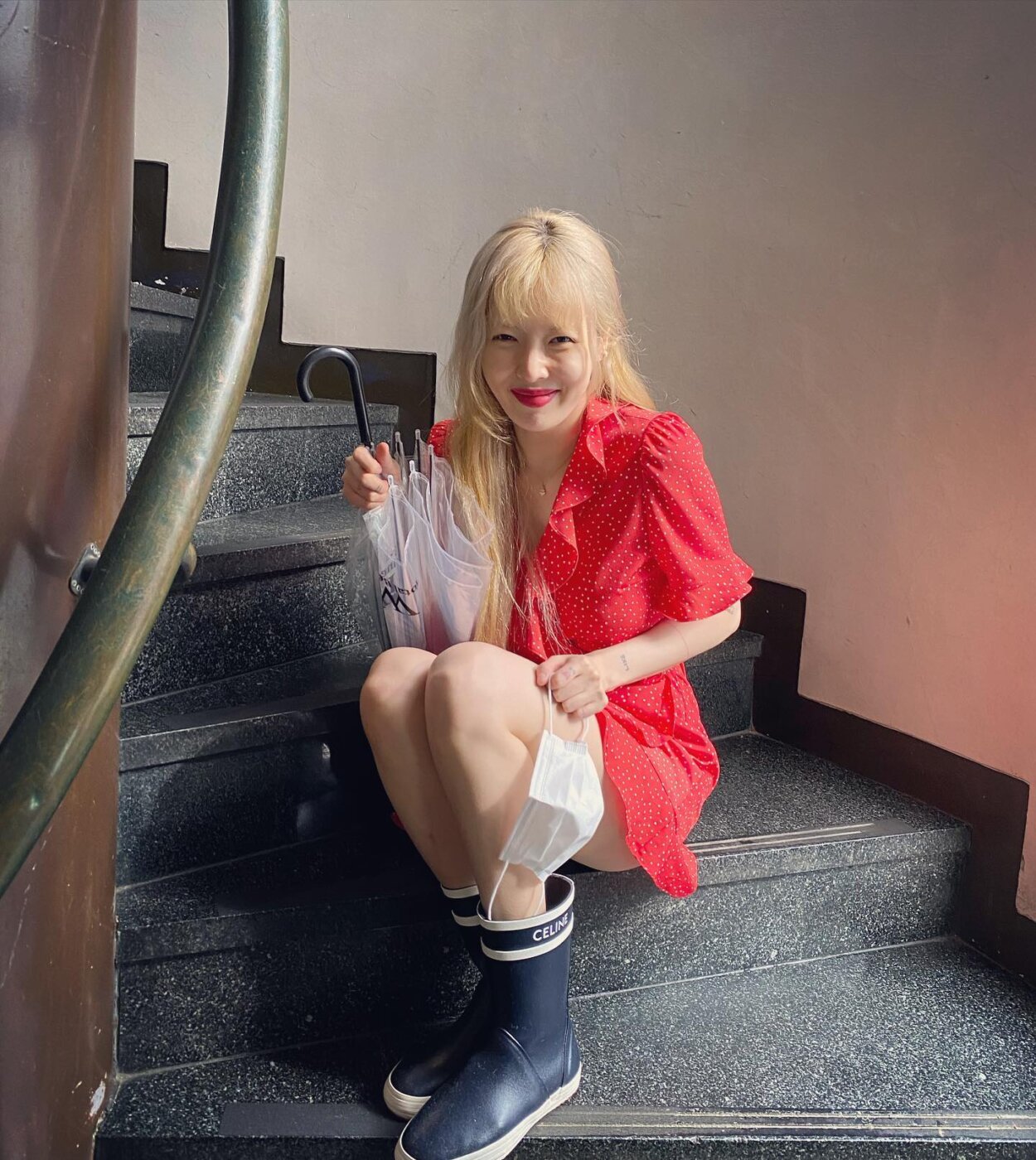 롱 레인부츠도 좋지만 신고 벗기 편한 숏 레인부츠를 찾고 있다면, 현아의 장마 룩을 참고해 보길. 현아는 비비드한 컬러감이 돋보이는 프릴 원피스에 짧은 기장의 레인부츠를 매치해 여성스러우면서도 러블리한 매력을 선보였다. 또 이처럼 짧은 기장의 레인 부츠는 다리 라인을 시원하게 들어낼 수도 있고, 통풍도 탁월해 레인 부츠 입문자에게는 제격이다.