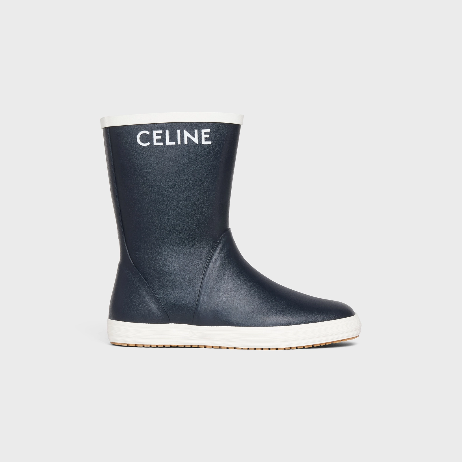네이비 컬러와 화이트 로고 조합이 매력적인 제품으로 미니멀한 매력이 돋보이는 레인부츠 아이템이다. 천연 고무 100%로 제작되며 폼 인솔이 탈부착 가능하다. 그뿐 아니라 5MM 굽으로 누구나 부담 없이 착용하기 쉽다는 점도 기억해 둘 것.
