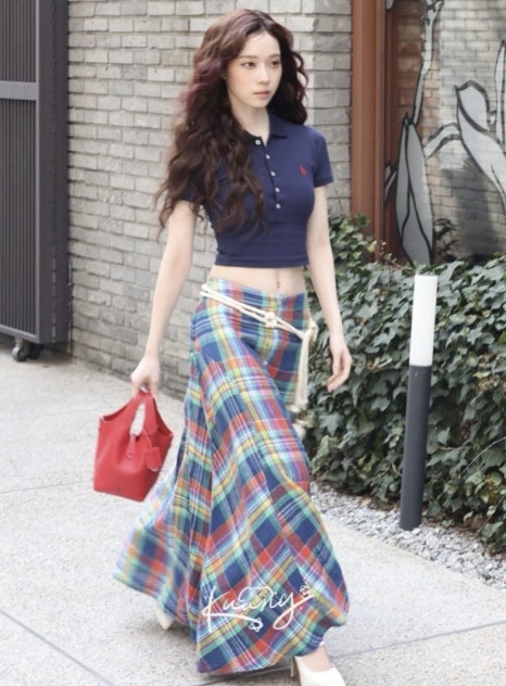 이날 윈터가 입은 맥시 스커트는 폴로 랄프로렌의 ‘플래드 리넨 맥시스커트’입니다. 한눈에 들어오는 경쾌한 색감의 체크 패턴과 시원하고 여유로운 실루엣이 유니크한 분위기를 내고 있는 아이템이죠.