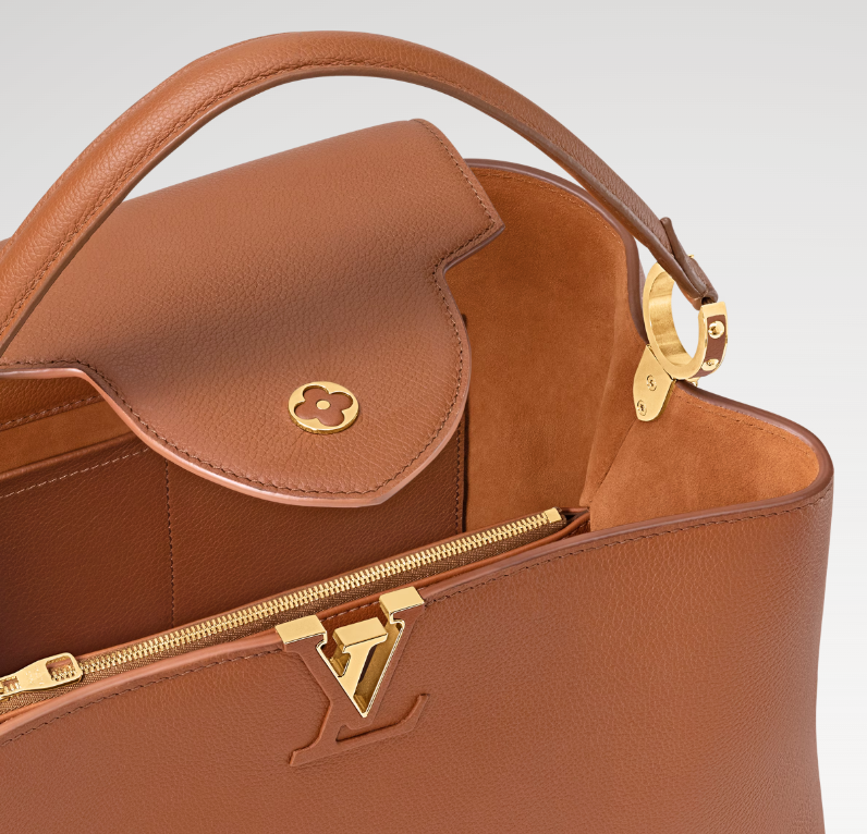 은은하고 고급스러운 브라운 컬러감이 매력적인 루이 비통 카퓌신 GM 수플은 2 가지 방법으로 스타일링이 가능하다.