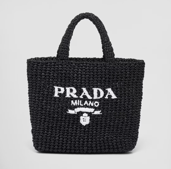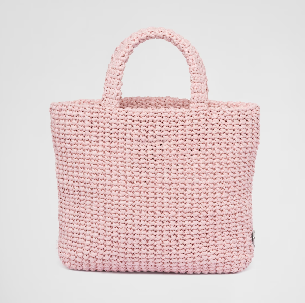 가벼운 천연 소재 라피아 원사로 제작된 토트백이다. 크로셰 기법이 적용되어 한층 부드럽고 포근한 분위기를 선사해준다. 전면에는 엠보싱 처리된 프라다 레터링 로고가 새겨져 있으며 측면에는 브랜드의 시그너처인 에나멜 메탈 트라이앵글 로고가 장식되어 있다.