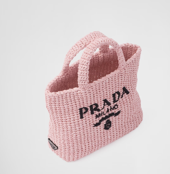 가벼운 천연 소재 라피아 원사로 제작된 토트백이다. 크로셰 기법이 적용되어 한층 부드럽고 포근한 분위기를 선사해준다. 전면에는 엠보싱 처리된 프라다 레터링 로고가 새겨져 있으며 측면에는 브랜드의 시그너처인 에나멜 메탈 트라이앵글 로고가 장식되어 있다.