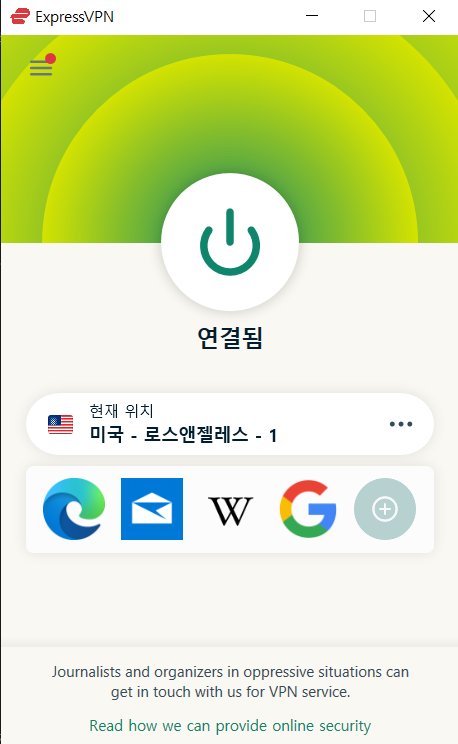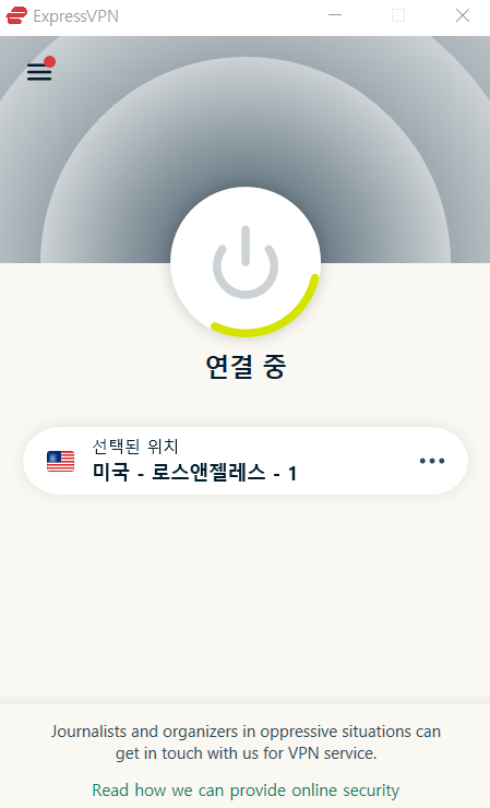 1. 익스프레스VPN 다운받고 실행시켜 인터넷 접속 위치를 '미국' 으로 설정한다.