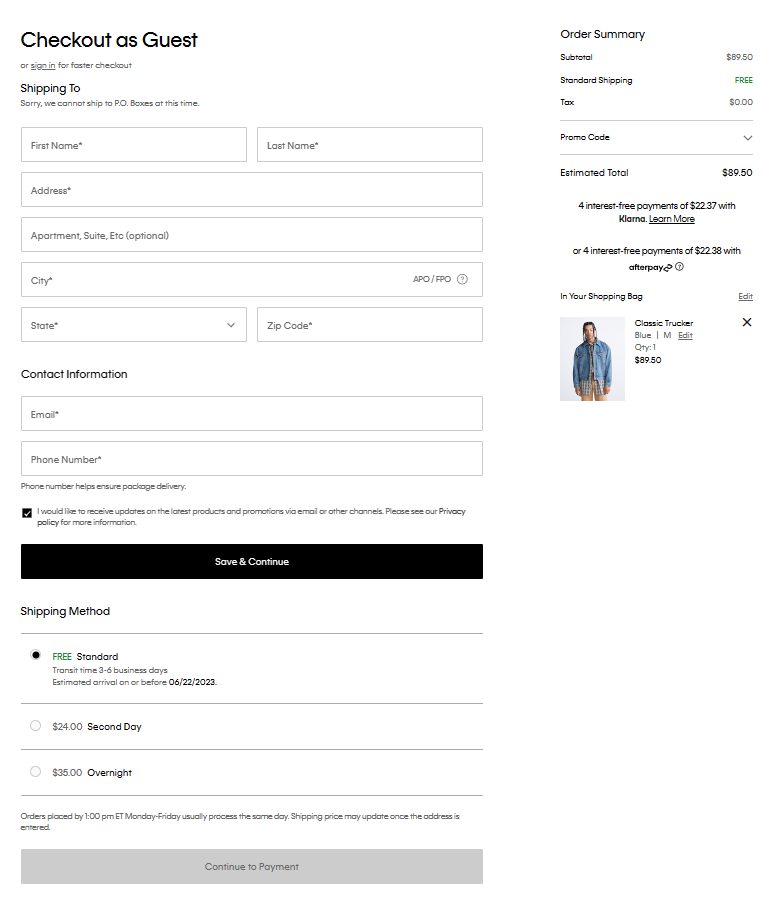 3. 체크 아웃으로 넘어 와 이름부터 배대지 등 세부 사항을 하나씩 입력할 것.