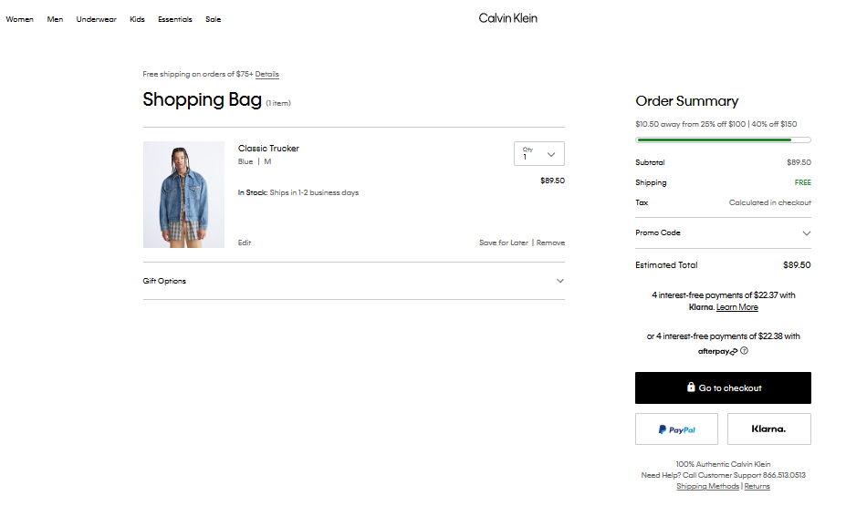 2. 구매할 캘빈클라인 제품을 선택한 뒤 장바구니로 이동한다.