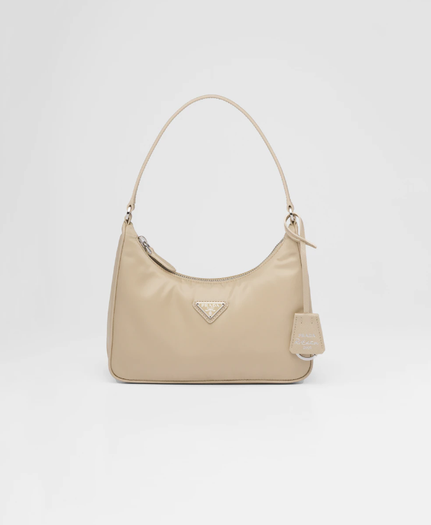 해양에서 수거한 플라스틱과 어망, 등 직물섬유를 정화한 친환경 소재, 리나일론으로 제작된 호보백. 실용적인 사이즈로 휘뚜루 마뚜루 들기 좋은 명품 백이다. 지퍼 클로저와 나일론 라이닝이 있는 호보 스타일 숄더 백에 메탈 트라이앵글 로고를 장식했다. 심플하면서도 미니멀한 디자인으로 한 번 구매하면 오랫동안 사용할 수 있는 클래식 백으로 자리매김 하였다.
