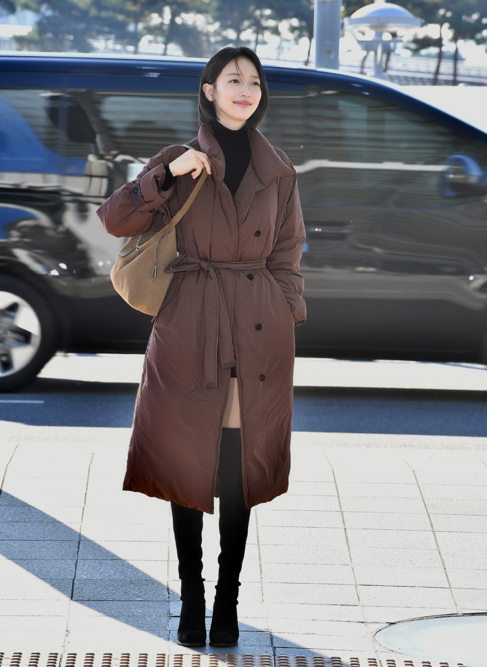 예쁜 구스 롱패딩 추천 ✨ 표예진 공항패션 시슬리 구스 롱 패딩 가격 코디 사진