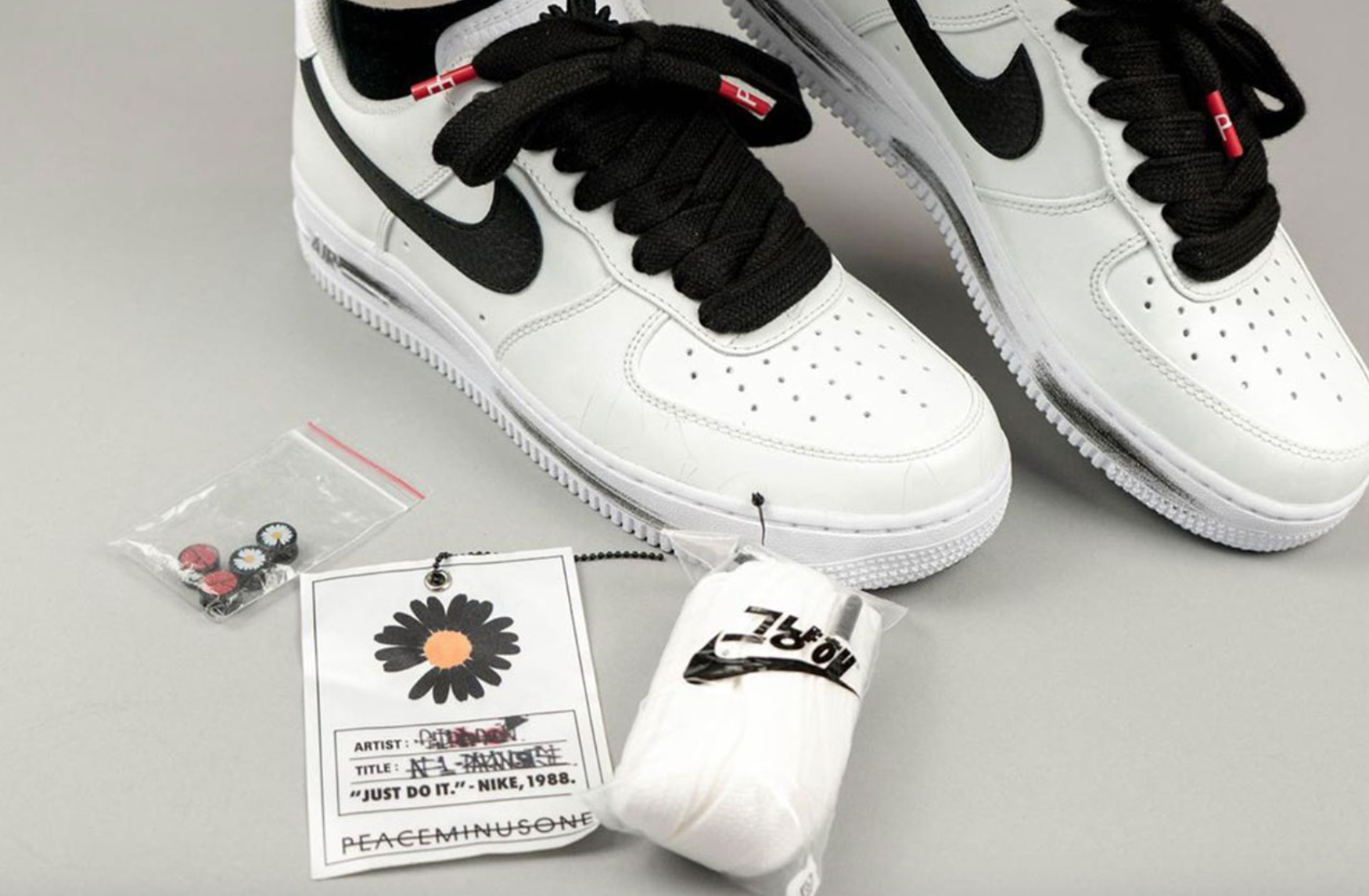 피스마이너스원 나이키 콜라보 결과물, 에어포스1 실착샷이 공개되셨다.