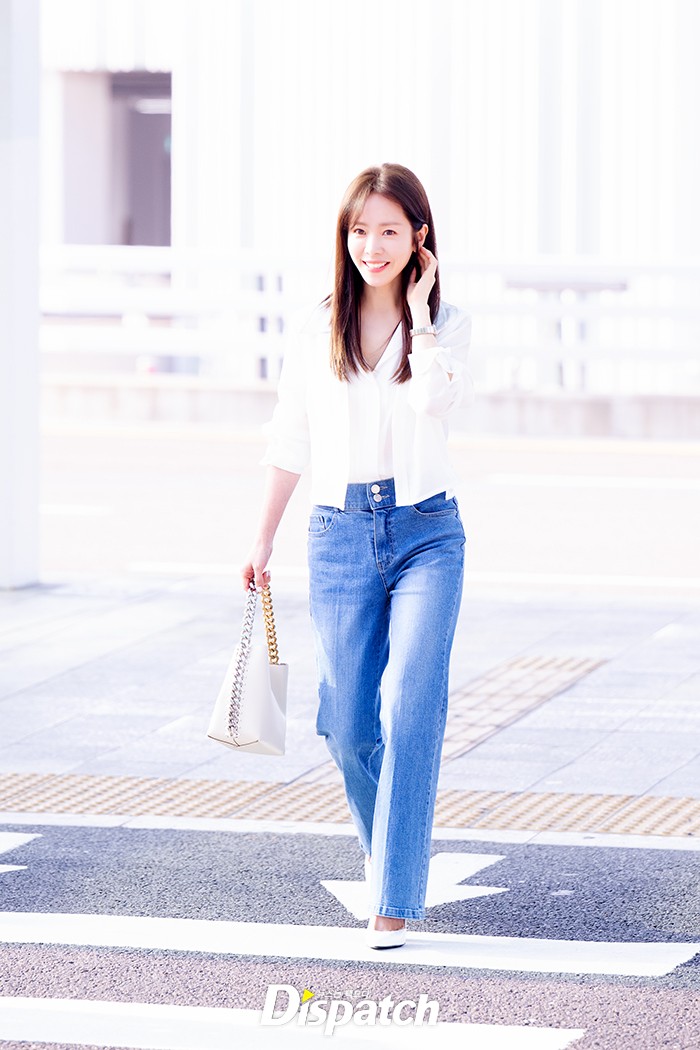 그녀는 오랜만에 해외 일정 차 일본으로 떠나기 위해 인천공항을 찾았는데요. 여전히 청순하면서도 특유의 여성스러운 스타일로 많은 이들의 시선을 끌었습니다. 이 날 한지민은 화이트 블라우스에 하이웨스트 부츠컷 데님 팬츠 그리고 스텔라 매카트니의 버킷백을 매치해 수수한 공항패션을 선보였는데요.