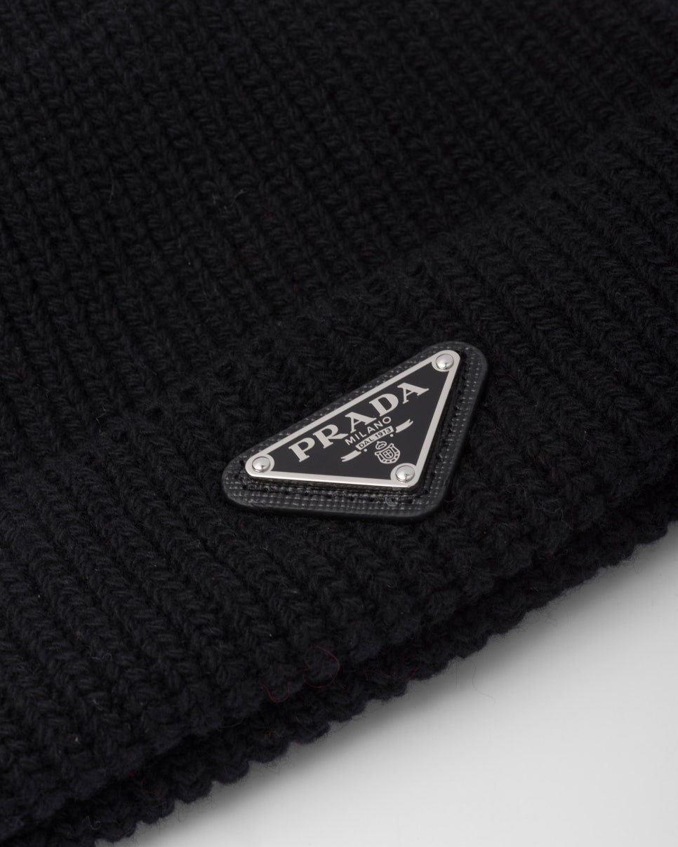 이름처럼 울과 캐시미어 소재로 제작된 비니로 심플하지만 모던한 느낌을 선사해주는 제품입니다. 프라다 비니답게 가죽 삼각형 패치 위에는 아이코닉한 에나멜 메탈 삼격형 로고가 새겨져 있습니다.