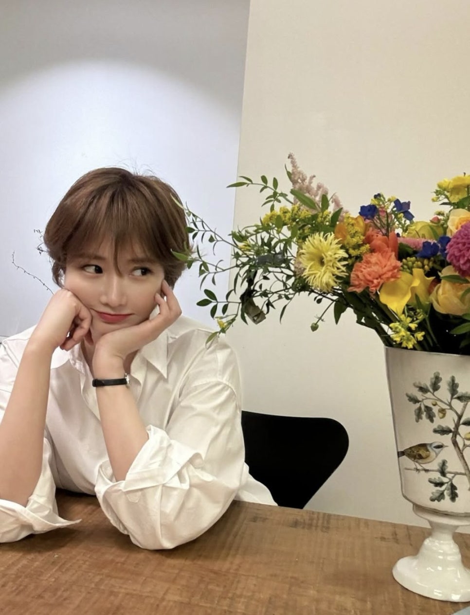 사진 속 고준희 숏컷은 양옆 귀를 살짝 덮는 기장에 이마를 가닥가닥 덮고 있는 스타일로 페이스 라인을 매끄럽게 보완해 주고 있죠. 이는 전체적인 볼륨감 조절로 도시적인 세련미를 극대화해주고 있기도 합니다.