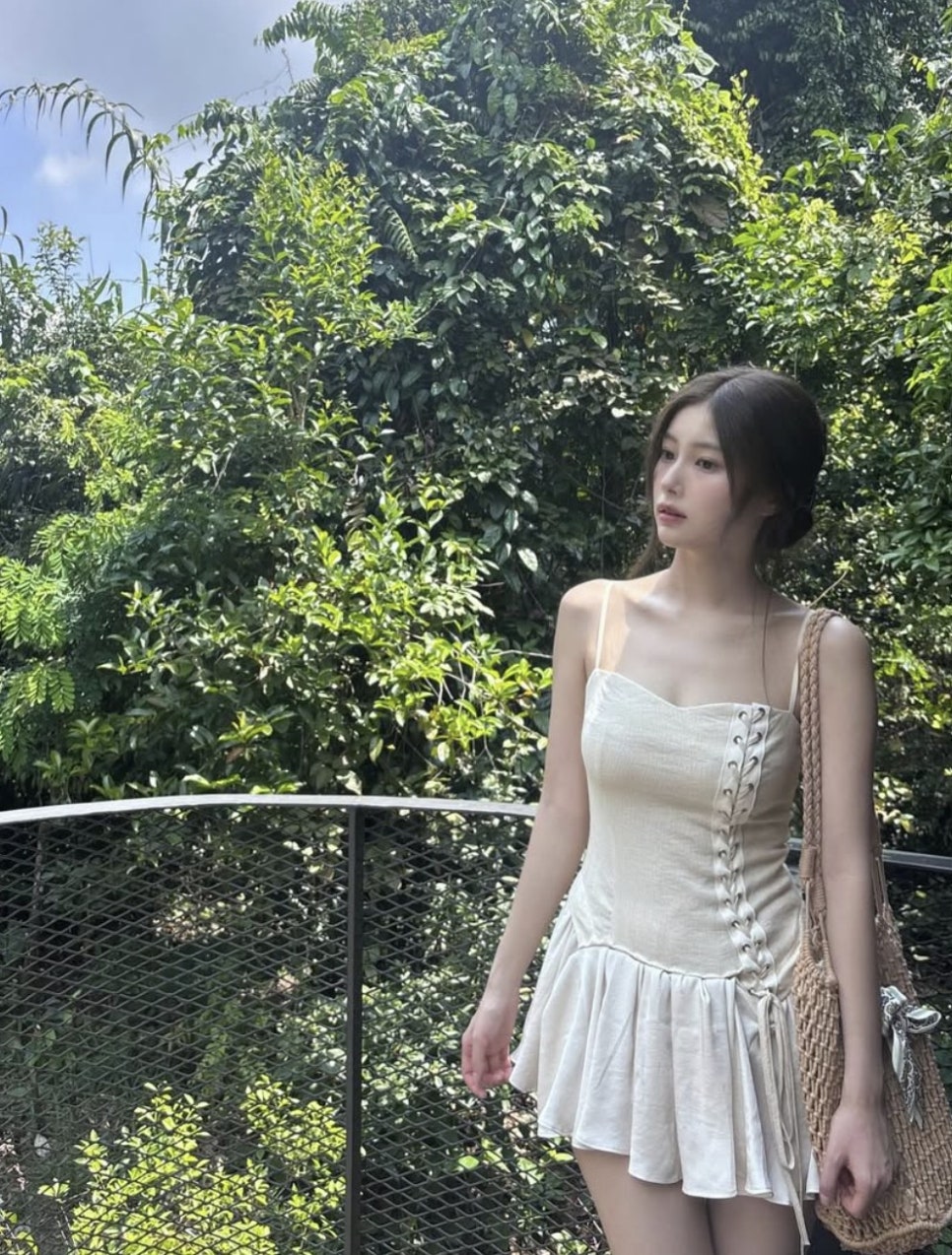 에디터 개인적으로 스타일링 팁을 더하자면, 드레스의 구조적인 라인이 돋보이는 만큼 악세사리는 최대한 절제해 주는 것을 추천드립니다. 린넨백이나 라피아 햇처럼 내추럴한 무드의 소품과 매치하면 휴양지 분위기에 찰떡, 뾰족한 플랫 슈즈나 작은 크로스백을 더하면 도심 속 감성 있는 데이트룩으로도 충분히 활용이 가능 💖