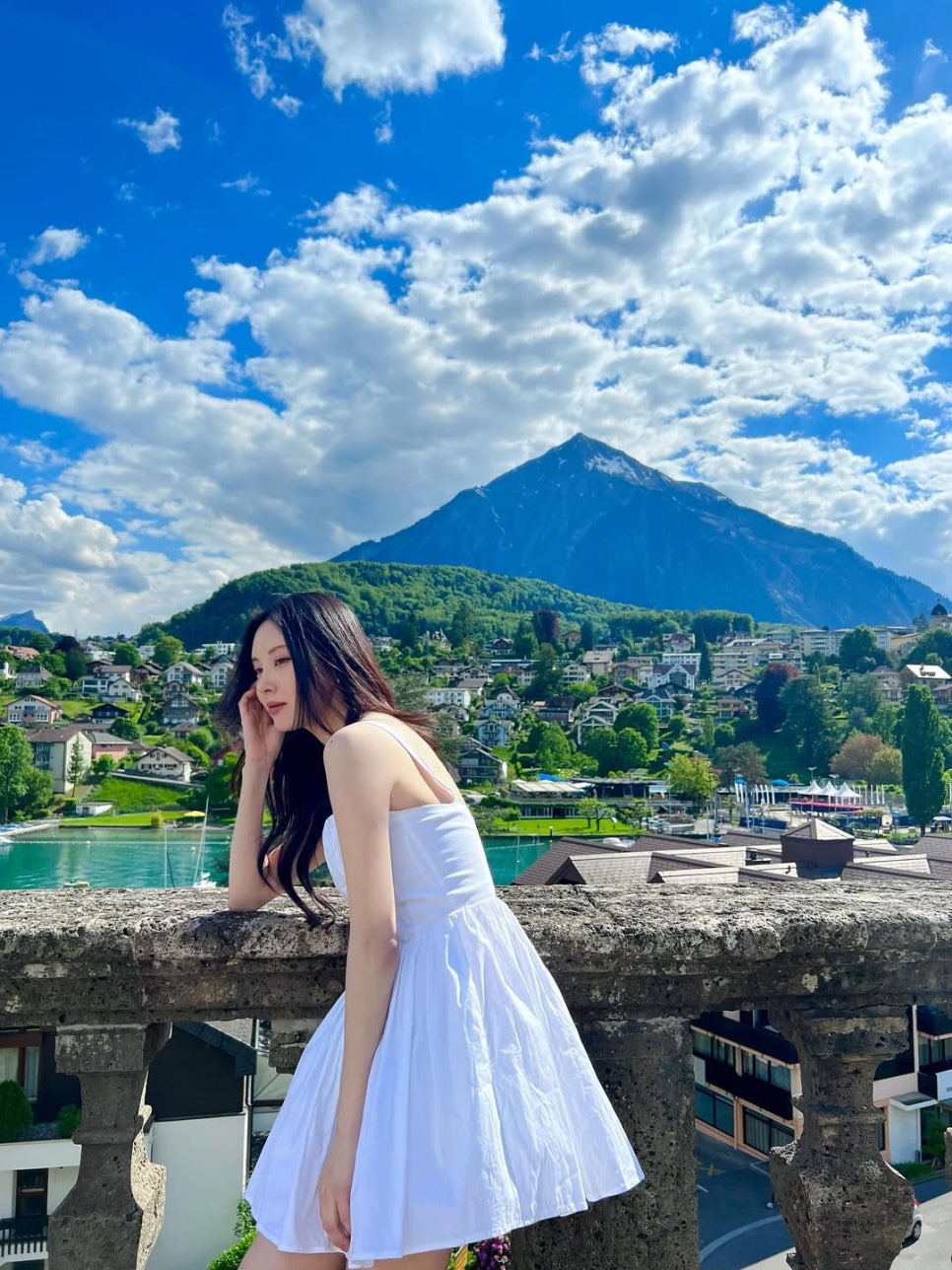 서현은 스위스로 여행을 떠났는데요. 언뜻 보기만 해도 청량한 무드가 느껴지는 알프스를 배경으로 인증샷을 남겼습니다.