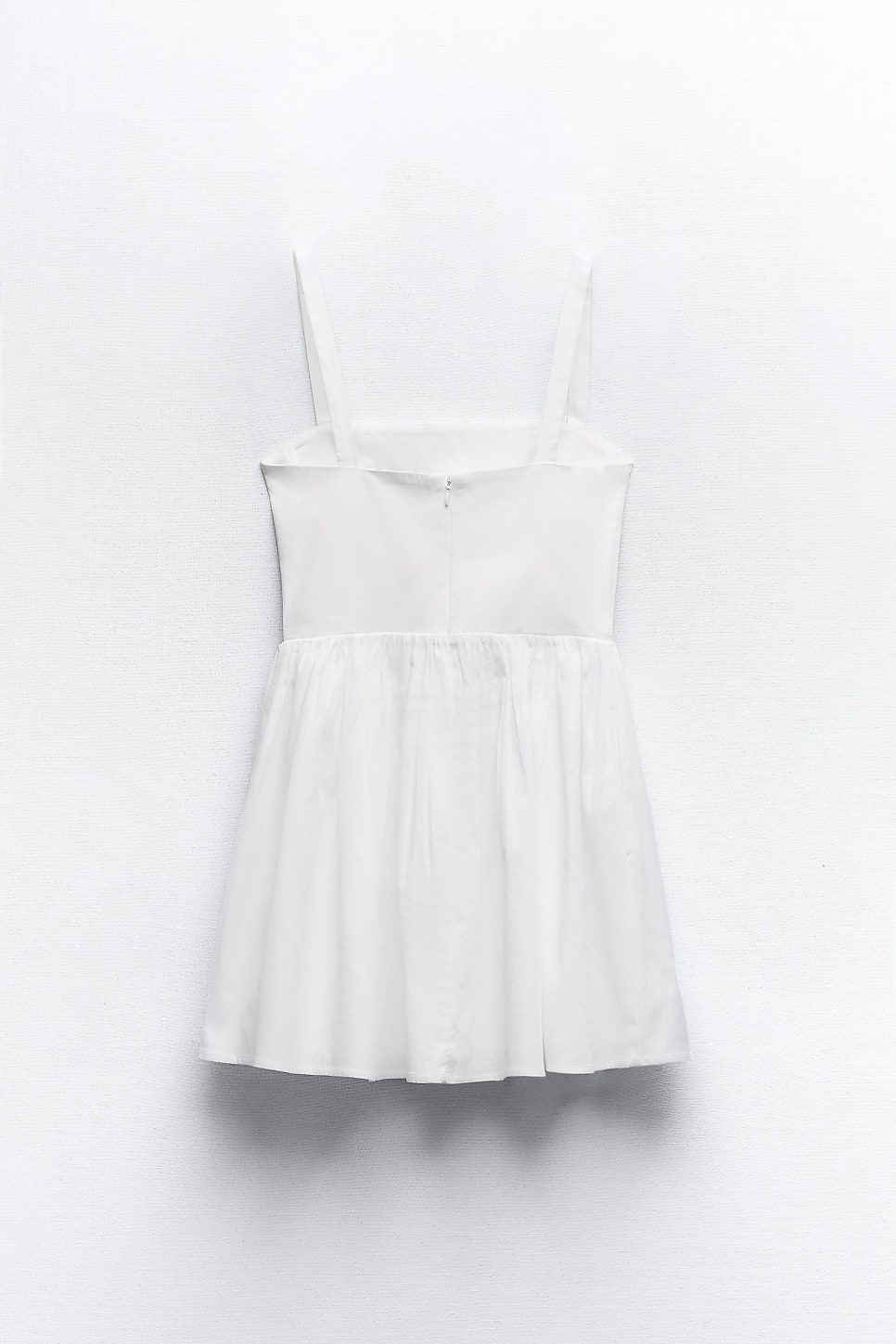 원피스의 뒷 부분에는 지퍼가 있어 지퍼를 통해 열고 닫을 수 있습니다. 또한 A라인으로 떨어지는 디자인으로 체형 보완 효과도 있을 뿐더러 가격 또한 5만원 대로 합리적인데요. 기장감은 보시다시피 허벅지 중간 정도까지 내려오는 길이로 사랑스러운 무드를 연출하기 제격입니다.