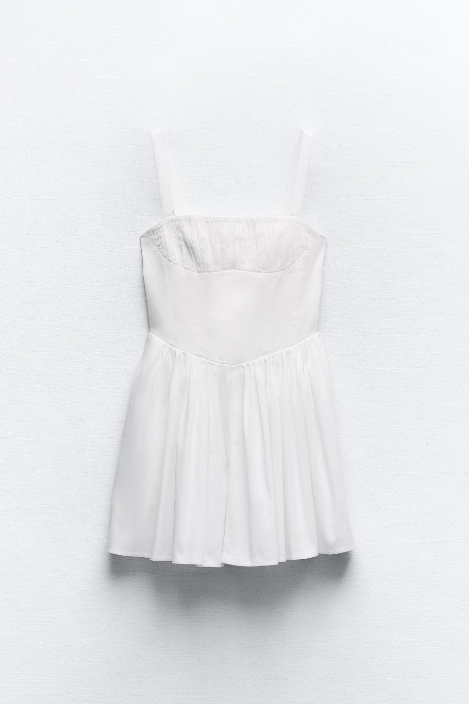 일자 네크라인과 스트랩이 달린 원피스인데요. 가슴과 허리 부분에 주름이 있어 원피스 이름처럼 한층 볼륨감있는 아웃핏을 연출해주는 제품이라고 할 수 있어요!