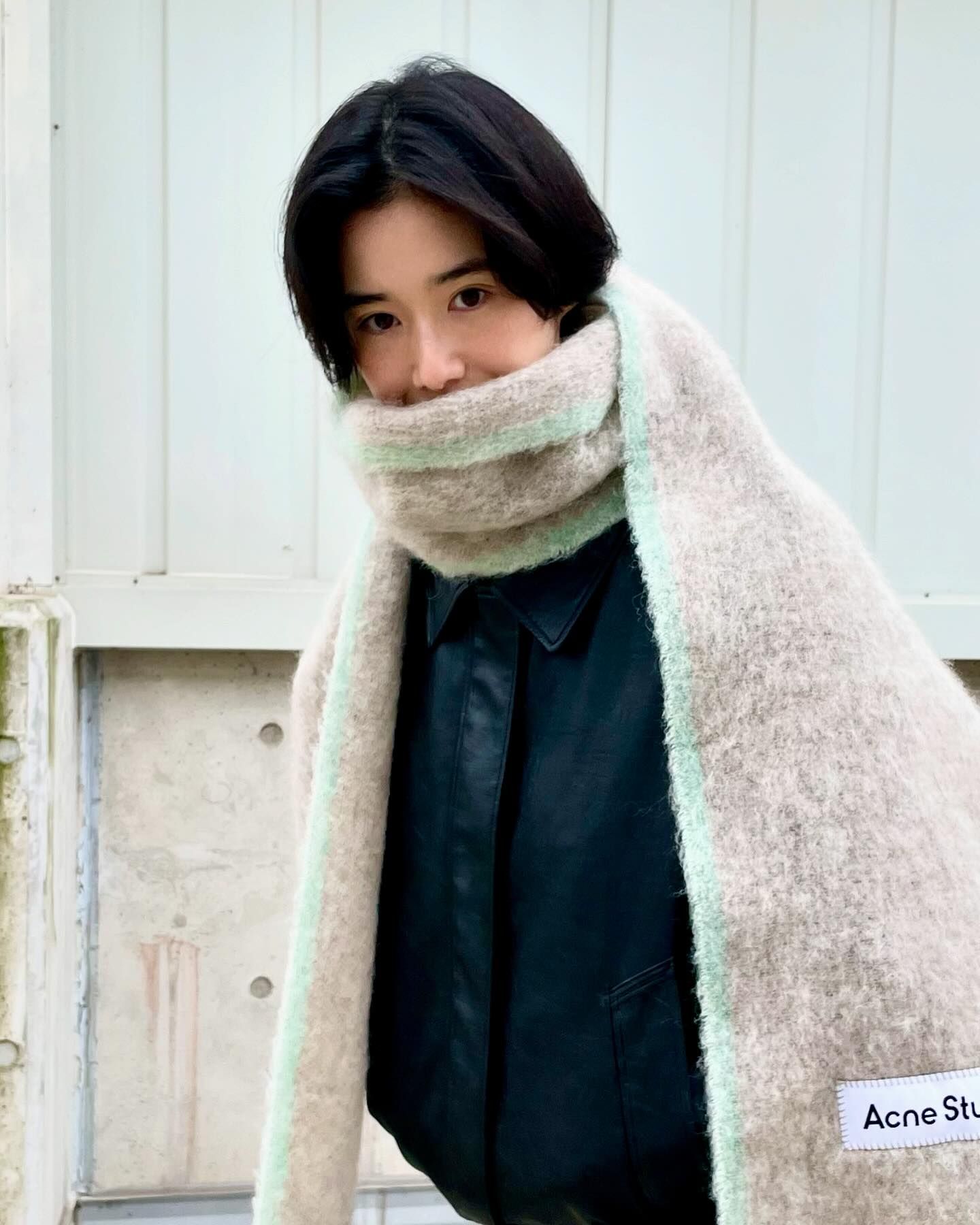 배우 정은채가 선택한 아크네 머플러는 2024 F/W 신상 제품인 울 모헤어 스카프- 슬림입니다.