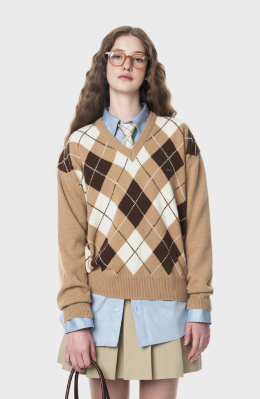 ARGYLE V-NECK KNIT [3COLOR]