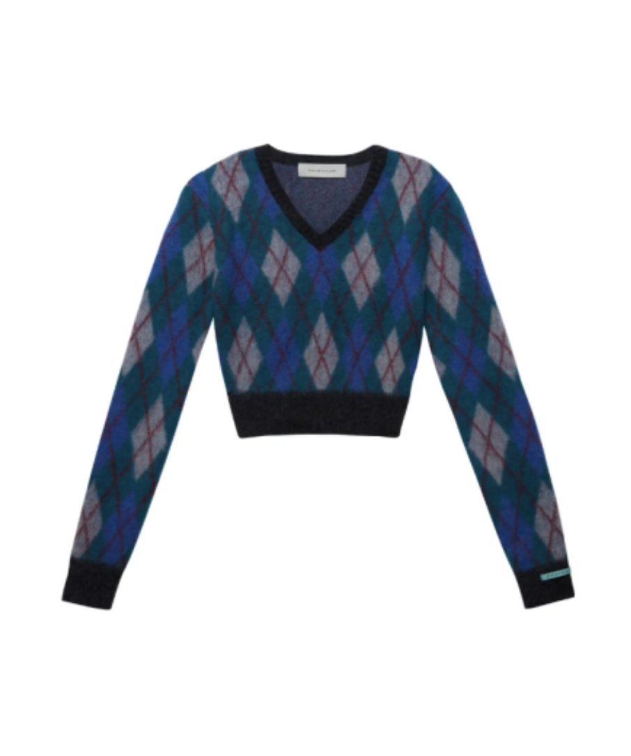 아가일 크롭 니트