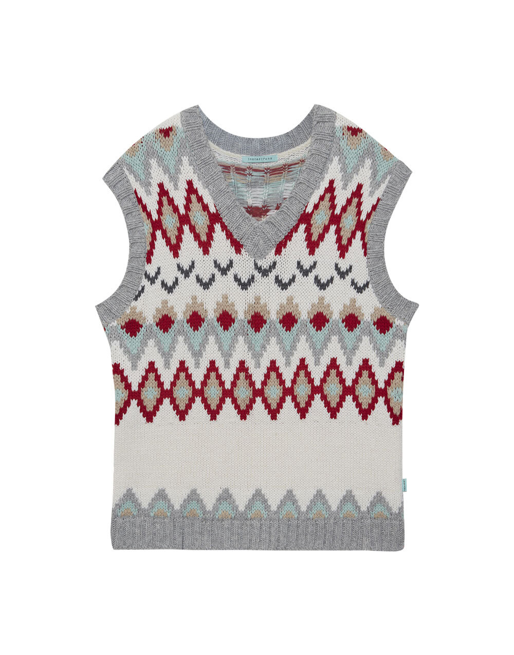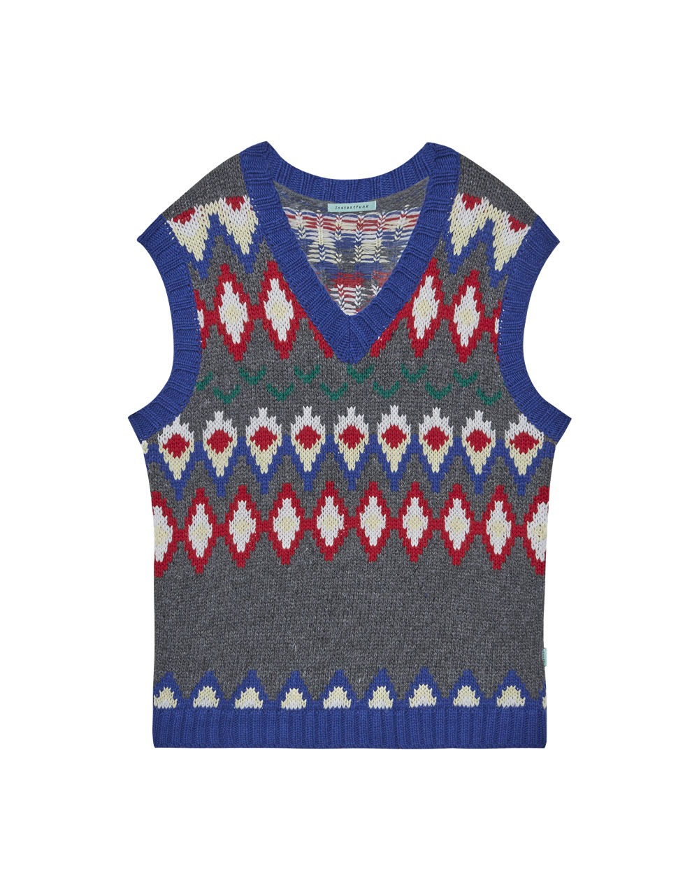비슷한 느낌의 아가일 패턴 니트이지만, 조금 더 유니크한 아가일 패턴이 돋보이고 귀여운 컬러감의 니트 베스트예요!