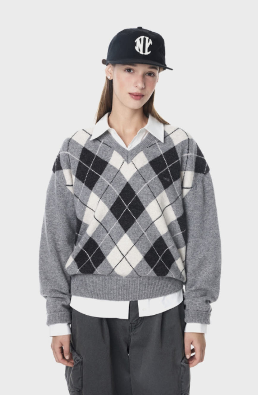 Argyle V-Neck Knit