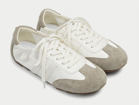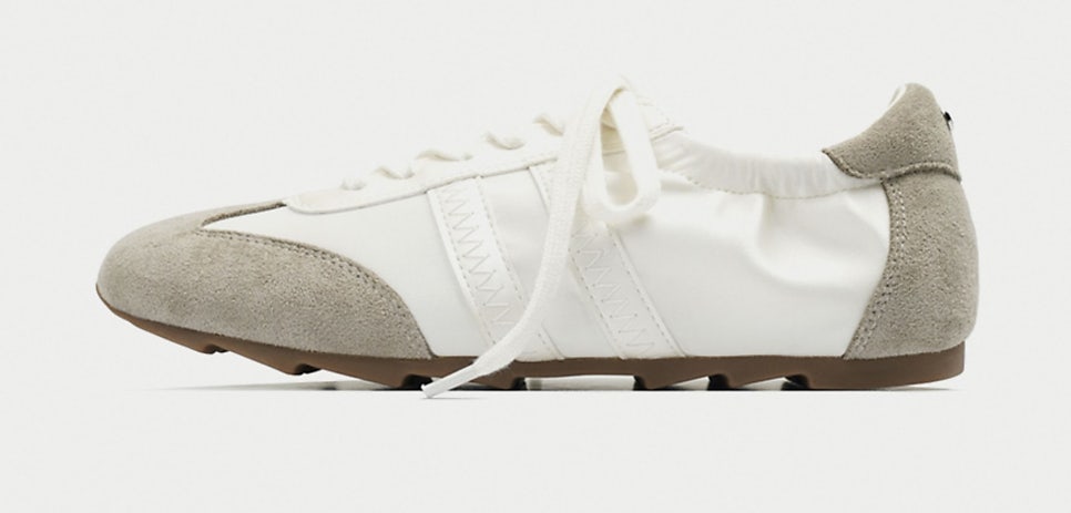 이세영의 공항룩 속 그 신발, 베어파우의 ‘Bria’입니다. 아이보리색 바탕에 앞뒤로 스웨이드 포인트가 들어간 발레슈즈인데요, 뒷부분에 더해진 셔링 포인트는 사이즈의 유연성과 편안한 착화감, 여성스러운 매력을 더해주고 있습니다. 인솔 부분은 라텍스 소재로 제작되어 뛰어난 쿠션감으로 장시간 착용에도 편안함을 유지해 주죠.