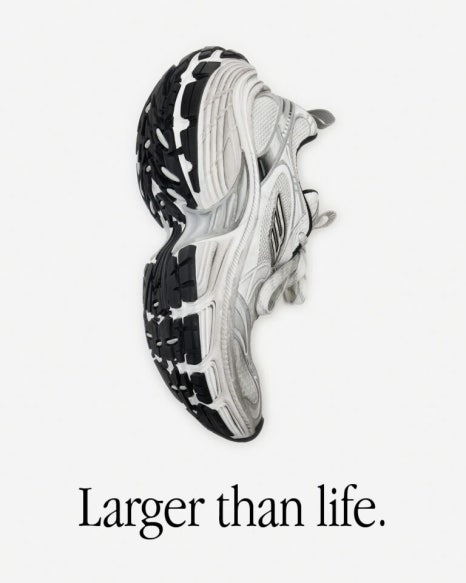20204 봄, 여름 컬렉션에서 처음 공개된 언뜻 봐도 남다른 크기의 발렌시아가 10XL이 그 주인공이다. 발렌시아가는 새로운 스니커즈 공개와 함께 포스터에 Larger than life라는 문구를 남기기도 했는데, 이 스니커즈는 러닝화에서 디자인 영감을 받았다. 발렌시아가가 새로운 시즌을 맞아 공개한 '발렌시아가 10XL의 가격, 컬러 및 사이즈 정보가 궁금하다면 주목해 볼 것.