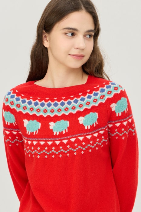 양 자카드와 페어 아일로 컬러 배색하여 포인트를 준 니트입니다! 부드러운 터치감의 울 100% 소재로 보온성과 착장감이 우수한데요. 라운드넥에 루즈한 핏으로 체형에 구애없이 착용이 가능해 원사이즈로 나왔습니다.