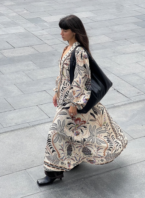 프릴 드레스, 페이즐리 패턴, 크로쉐, 플랫폼 힐, 스웨이드 부츠, 그리고 느슨한 호보백 등이 키워드입니다.