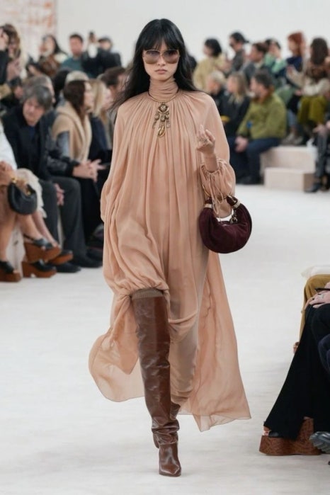 끌로에 FW 24 런웨이 컬렉션을 살피면 보호시크 패션이 어떤 스타일링인지 한 눈에 알 수 있어요. 프릴과 레이스 등을 활용하면서 과한 느낌이 아니라 세련된 바이브를 주는 걸 볼 수 있습니다.