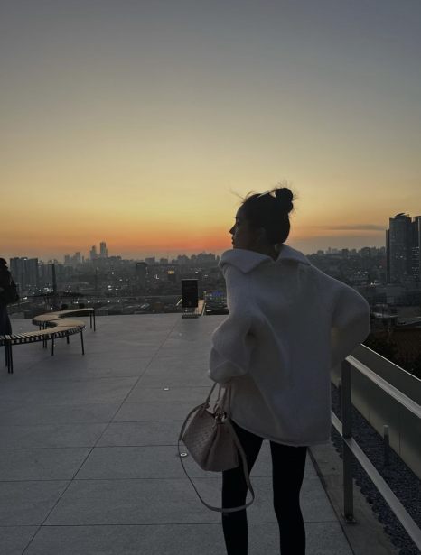 특히나 손나은은 올려 묶은 머리로 어깨라인을 더욱 강조하여 드러낸 덕에 분위기를 배로 끌어내고 있는듯 한데요. 해당 아우터와 함께 매치한 레깅스와 퍼 신발은 더욱 이지하고 편안한 분위기를 만들어주고 있습니다.