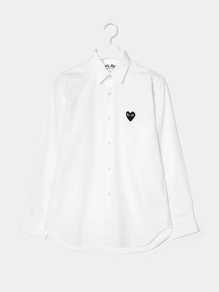 아사의 네이비 컬러에 비해 스트라이프 컬러가 조금 더 부드럽고 은은해 여성분들에게 더욱 인기가 많은 아이템이라고 할 수 있는데요. 이 외에도 꼼데 가르송의 블랙 와펜이 더해진 셔츠들도 있더라구요! 아사의 셔츠처럼 스트라이프 패턴은 들어가 있지 않지만 심플한 블랙과 클래식한 화이트 컬러로 출시되어 한층 단정하면서도 미니멀한 무드를 선사해 줍니다.
