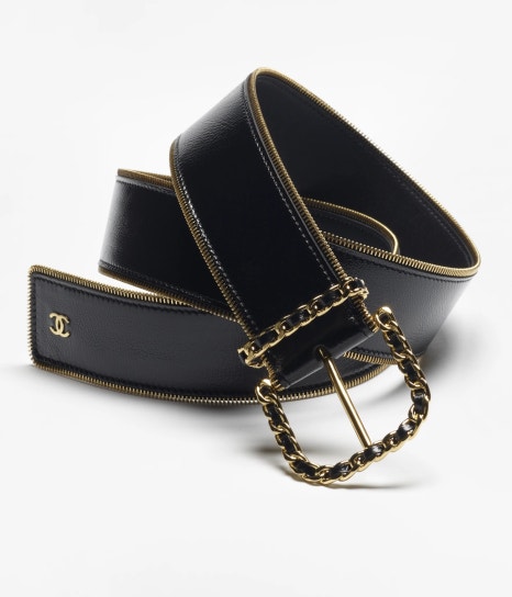 차정원은 모델처럼 치마에 샤넬 벨트를 함께 매치했는데요, 심플한 검정 가죽 소재에 추가된 금테 포인트 및 트위드 형식의 버클 부분, 끝부분에 더해진 샤넬 로고 포인트가 특징인 아이템이죠.