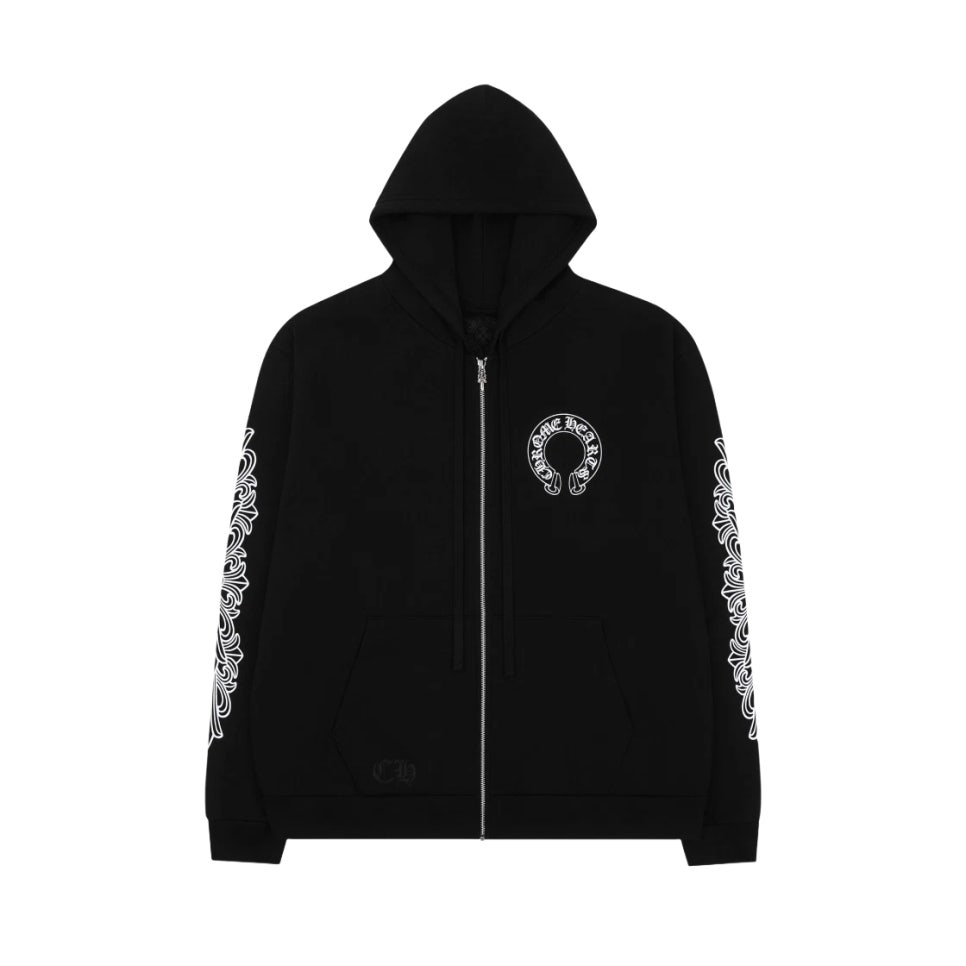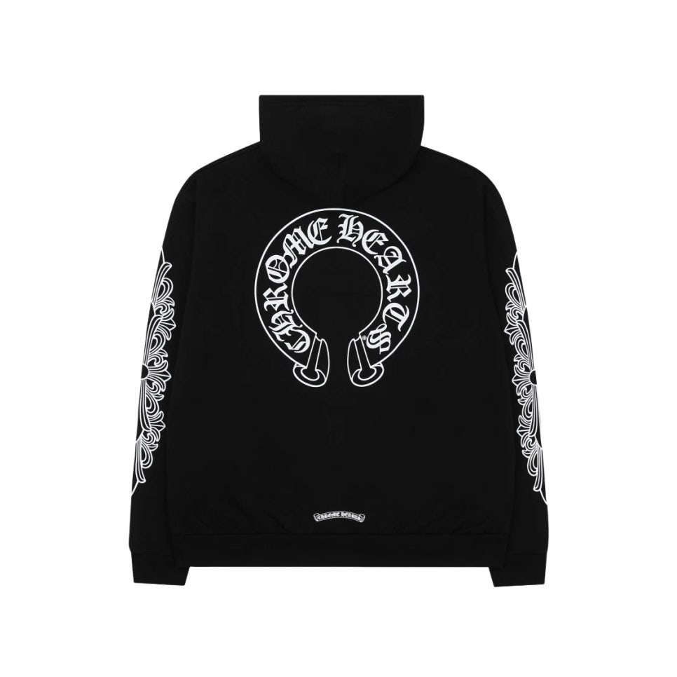 크롬하츠 홀스슈 플로랄 집업 후드 Chrome Hearts Horseshoe Floral Fleece Zip-Up Hoodie Black