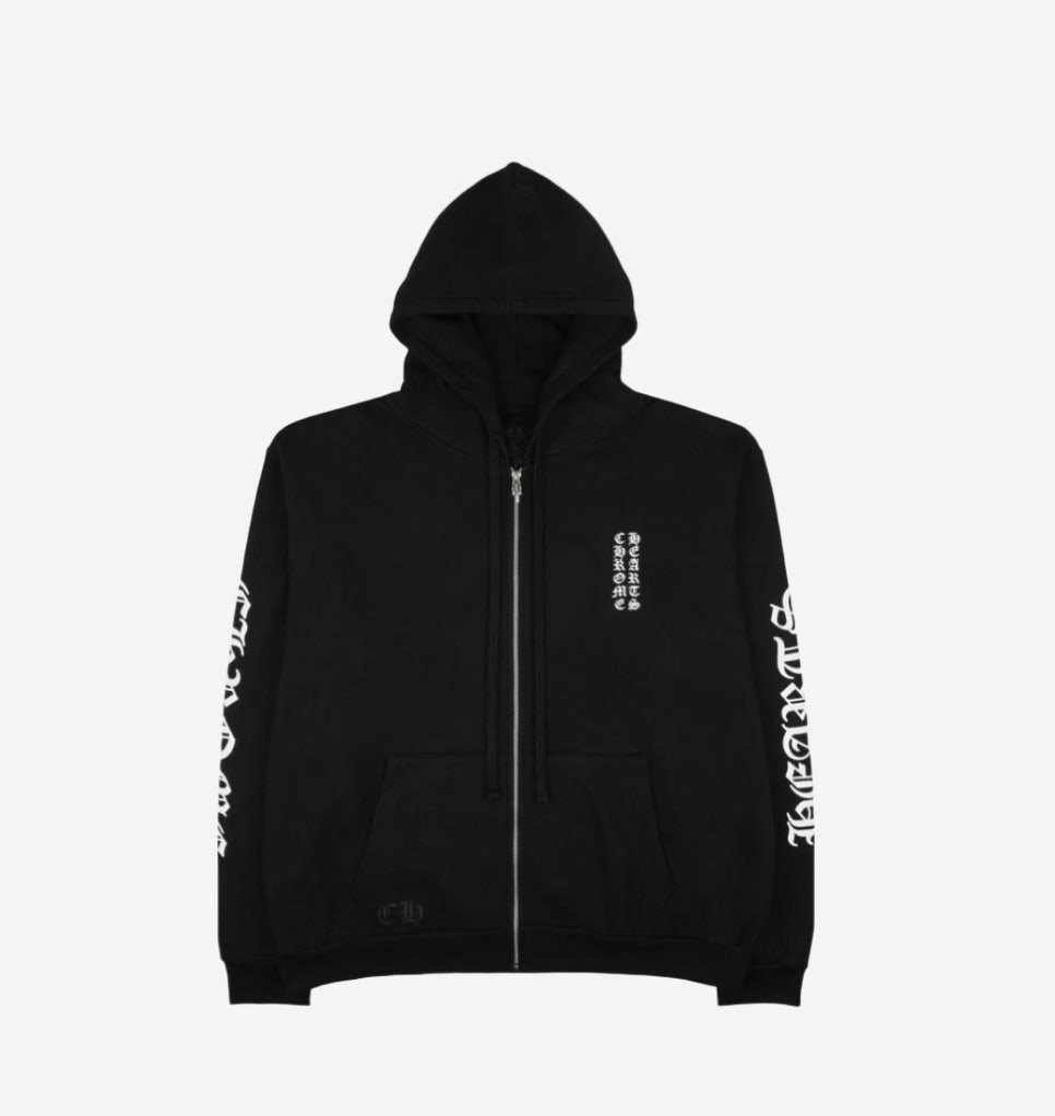 크롬하츠 버티컬 로고 후리스 집업 Chrome Vertical Logo Fleece Zip-Up Hoodie Black