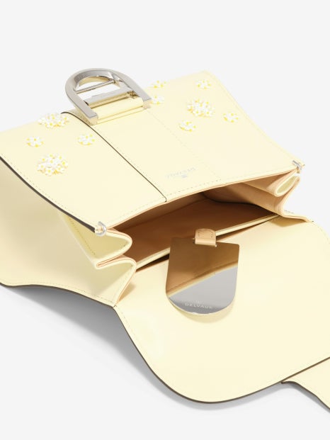 실키 카프 가죽 소재로 제작된 땅페트 백과 박스 카프 가죽 소재로 만들어진 핀 토이 미니백이 대표적입니다. 두 제품 모두 델보 브리앙 미니 스윗 데이지 백과 같이 버터 바닐라 컬러로 출시됐으며, 비즈와 시퀀 데이지 디테일이 동일하게 새겨져 있습니다. 세 재품 모두 길이 조절 및 탈착 가능한 숄더 스트랩이 함께 증정된다는 점도 참고해 두시면 좋을 것 같아요!