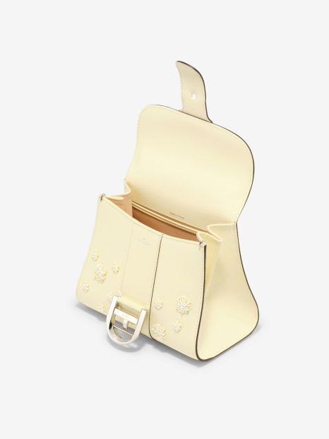 기은세가 선택한 델보 브리앙 미니 스윗 데이지는 박스 카프 가죽 소재로 제작된 스몰 백입니다. 하우스의 장인이 수작업으로 수놓은 비즈와 시퀀 데이지 디테일이 가장 큰 포인트입니다. 버터 바닐라 컬러로 여성스러우면서도 사랑스러운 무드까지 선사해주죠. 물론 가방의 앞 부분은 브리앙백의 상징적인 D 모양 메탈이 위치해 있습니다.