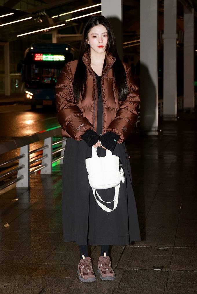 휠라의 글로벌 엠버서더로 활동하며 남다른 영향력을 드러내고 있는 배우 한소희, 그녀는 휠라 제품들을 착용한 채 인천 국제공항에 모습을 드러냈었죠? 이날 한소희는 브라운 패딩과 스니커즈를 깔맞춤으로 매치하여 전체적인 룩에 통일감을 주었는데요.