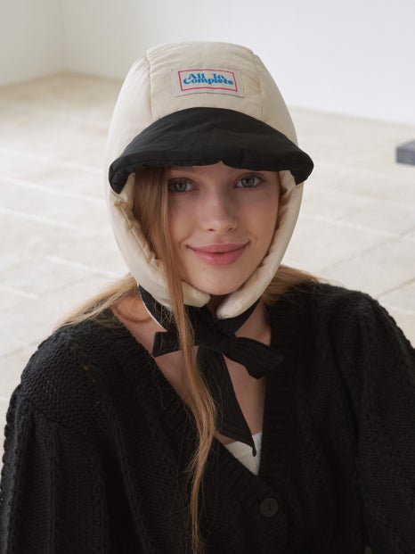 올인컴플리트 판다 패딩 바라클라바는 보온성이 좋은 패딩 소재의 제품으로 스트랩과 챙 부분에 배색을 사용해 한층 키치한 무드를 연출했습니다. 또 뒤쪽 밴딩 스트랩으로 머리 둘레를 자유롭게 조절해 착용할 수 있죠.