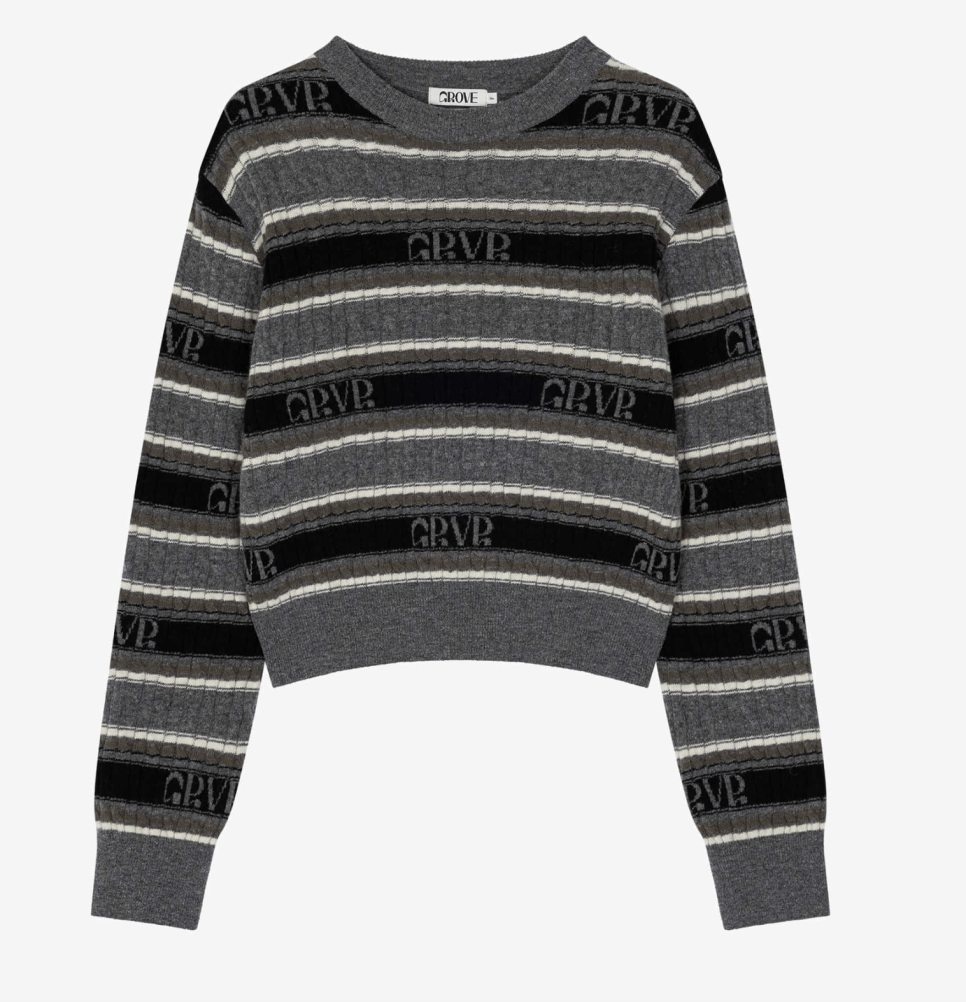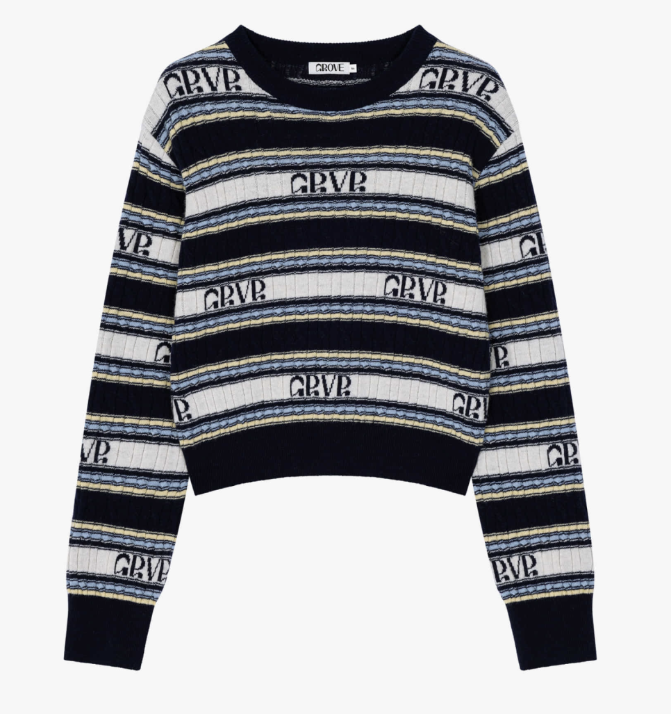 이 제품은 블루가 포인트로 들어간 매력적인 컬러감으로 인기가 많았던 그로브 아이템인데요, 22 FW 시즌에 나왔던 제품이기 때문에 현재는 솔드아웃으로 구할 수 없어요. 그래도 그로브에서는 매 시즌마다 스트라이프 배색 니트를 출시하고 있어 이번 시즌에서 전개한 스트라이프 니트를 추천해드릴게요.