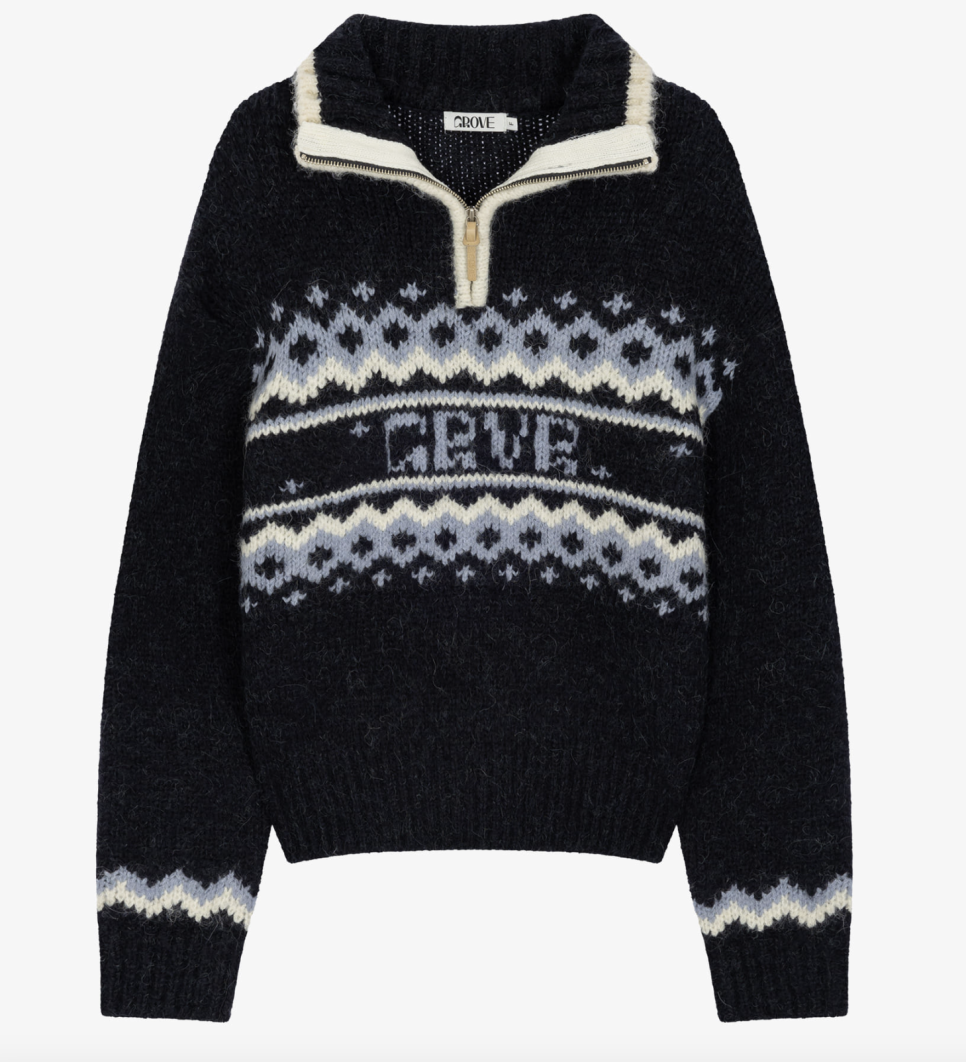 비슷한 느낌이지만 컬러 배색이 조금 더 깔끔한 느낌이라 이번 시즌 키워드인 ‘드뮤어’와도 잘 어울리면서 그로브만의 무드가 잘 담긴 니트 아이템이에요. 이번 시즌에도 인기가 많았기 때문에 현재 그레이와 브라운 컬러는 품절이네요. 네이비 컬러까지 품절되기 전에 얼른 한 번 살펴보세요!