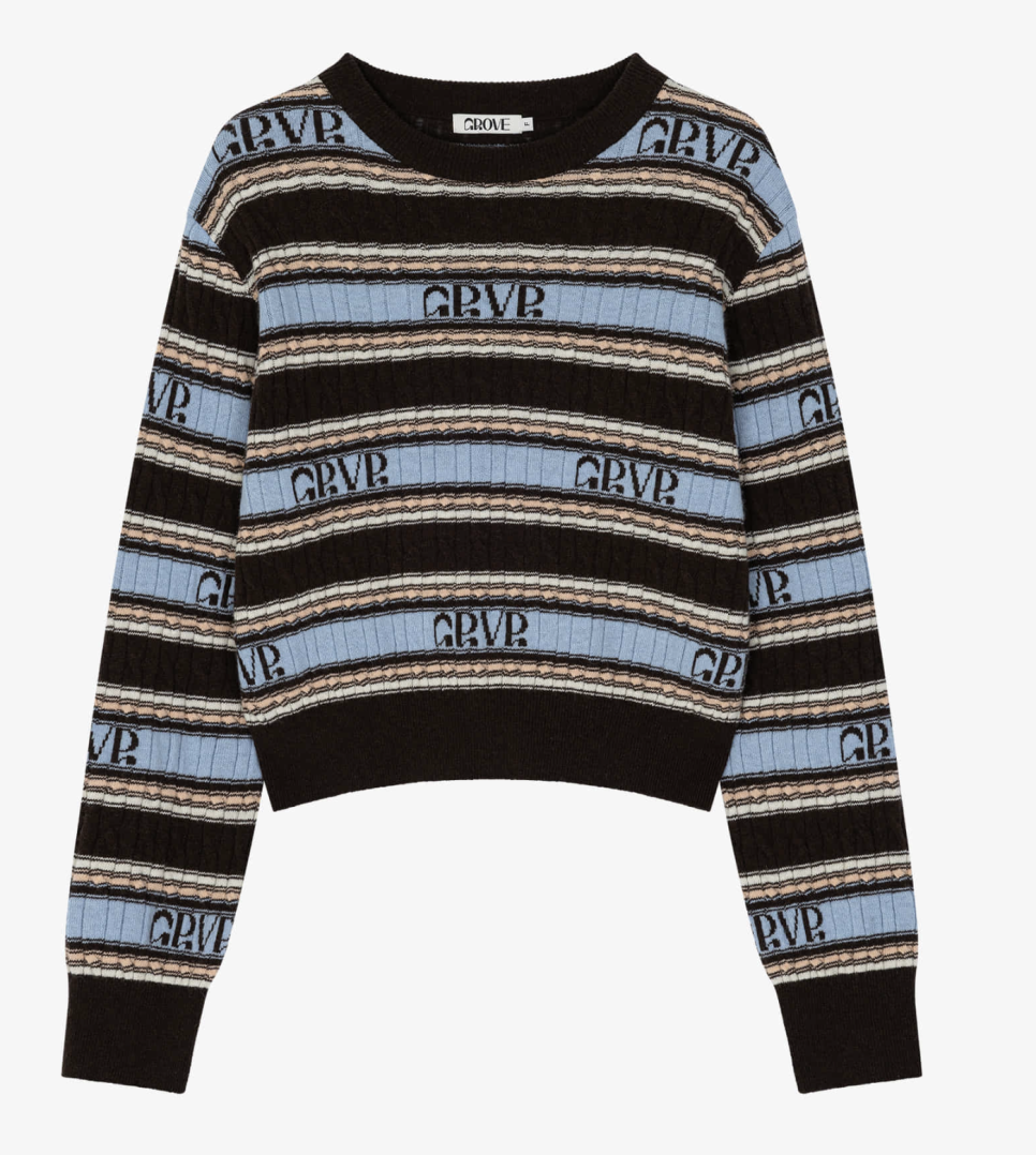 이 제품은 블루가 포인트로 들어간 매력적인 컬러감으로 인기가 많았던 그로브 아이템인데요, 22 FW 시즌에 나왔던 제품이기 때문에 현재는 솔드아웃으로 구할 수 없어요. 그래도 그로브에서는 매 시즌마다 스트라이프 배색 니트를 출시하고 있어 이번 시즌에서 전개한 스트라이프 니트를 추천해드릴게요.