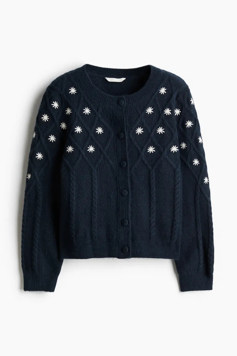 엠브로이더리 케이블 니트 가디건