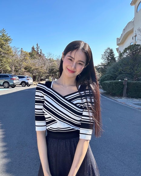 이 때 빠지지 않는 패턴이 바로 스트라이프 패턴이다. 다가오는 봄 아우터 없이 단품으로 포인트 주기도 제격인 스트라이프 톱은 힙하고 트렌디한 무드를 연출하기 좋은 아이템이다. 그녀가 선택한 제품은 원진스튜디오의 그래픽 스트라이프 슬립탑.