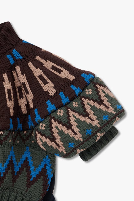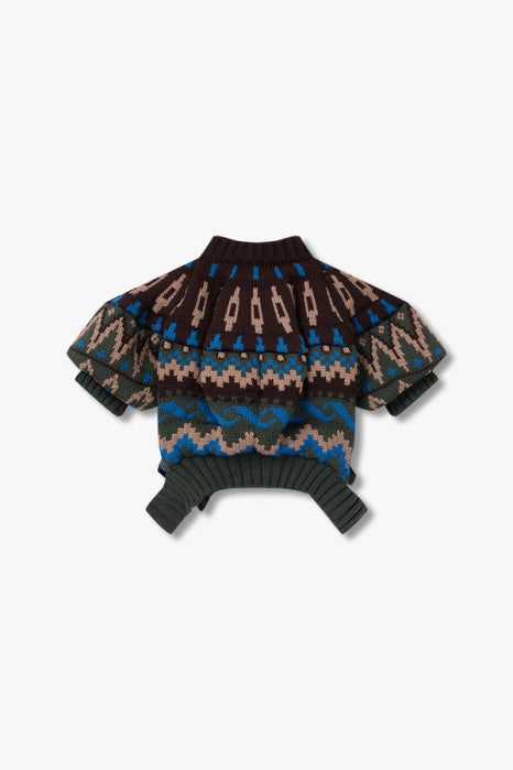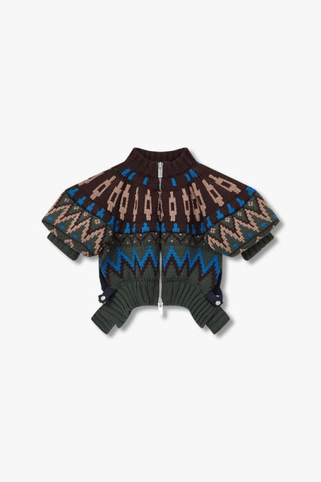 사카이 크롭 자카드 니트 블루종