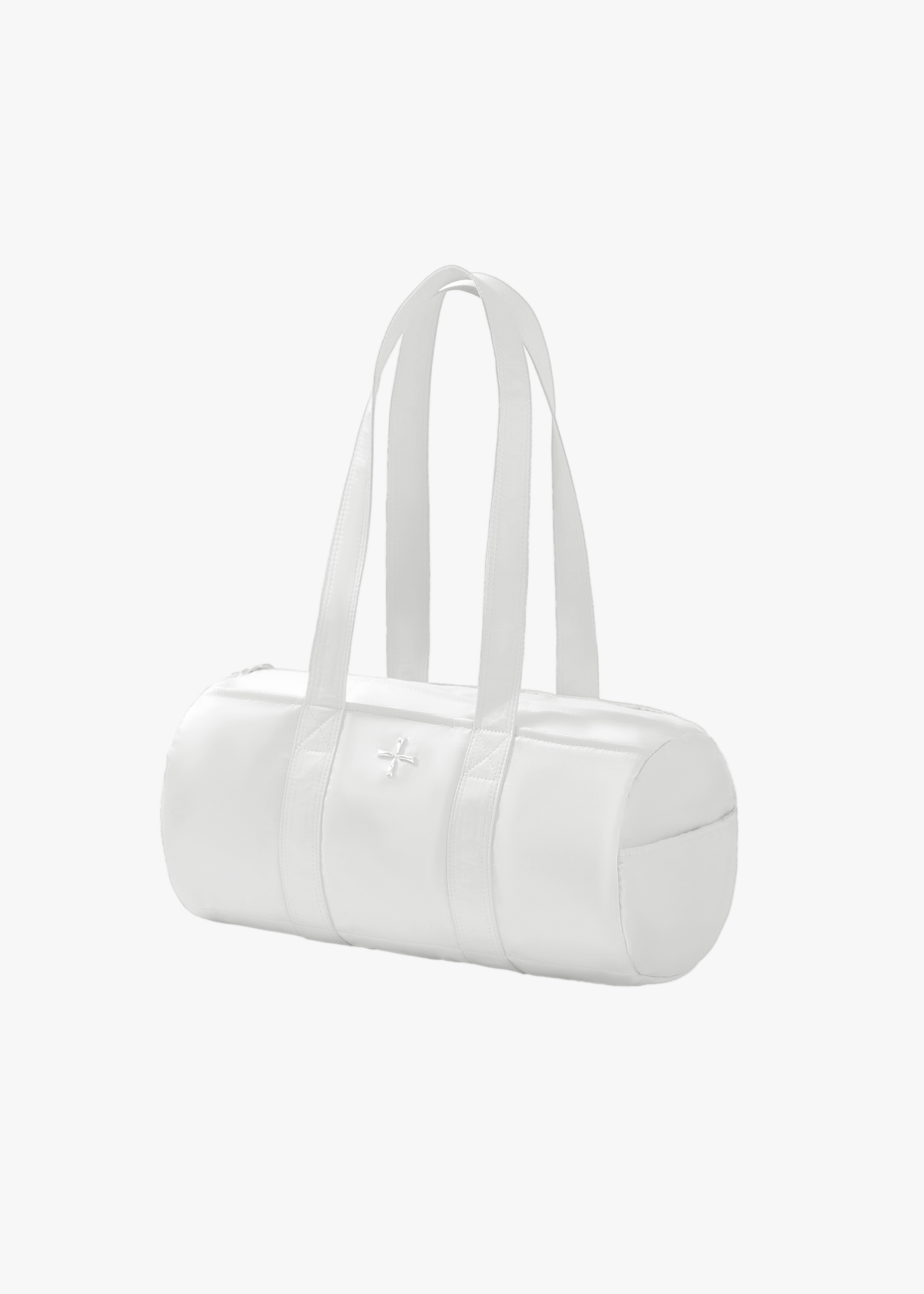패디드 안감으로 푹신한 느낌이 나는 동시에 광택이 더해져 세련된 무드를 함께 느껴볼 수 있습니다. 그뿐 아니라 가로로 긴 라운드 형태로 제작되어 수납 공간 또한 넉넉해 운동 가방으로도 제격입니다. 광택이 도는 실버 로고 디테일은 카하라 발레리나 백의 포인트!