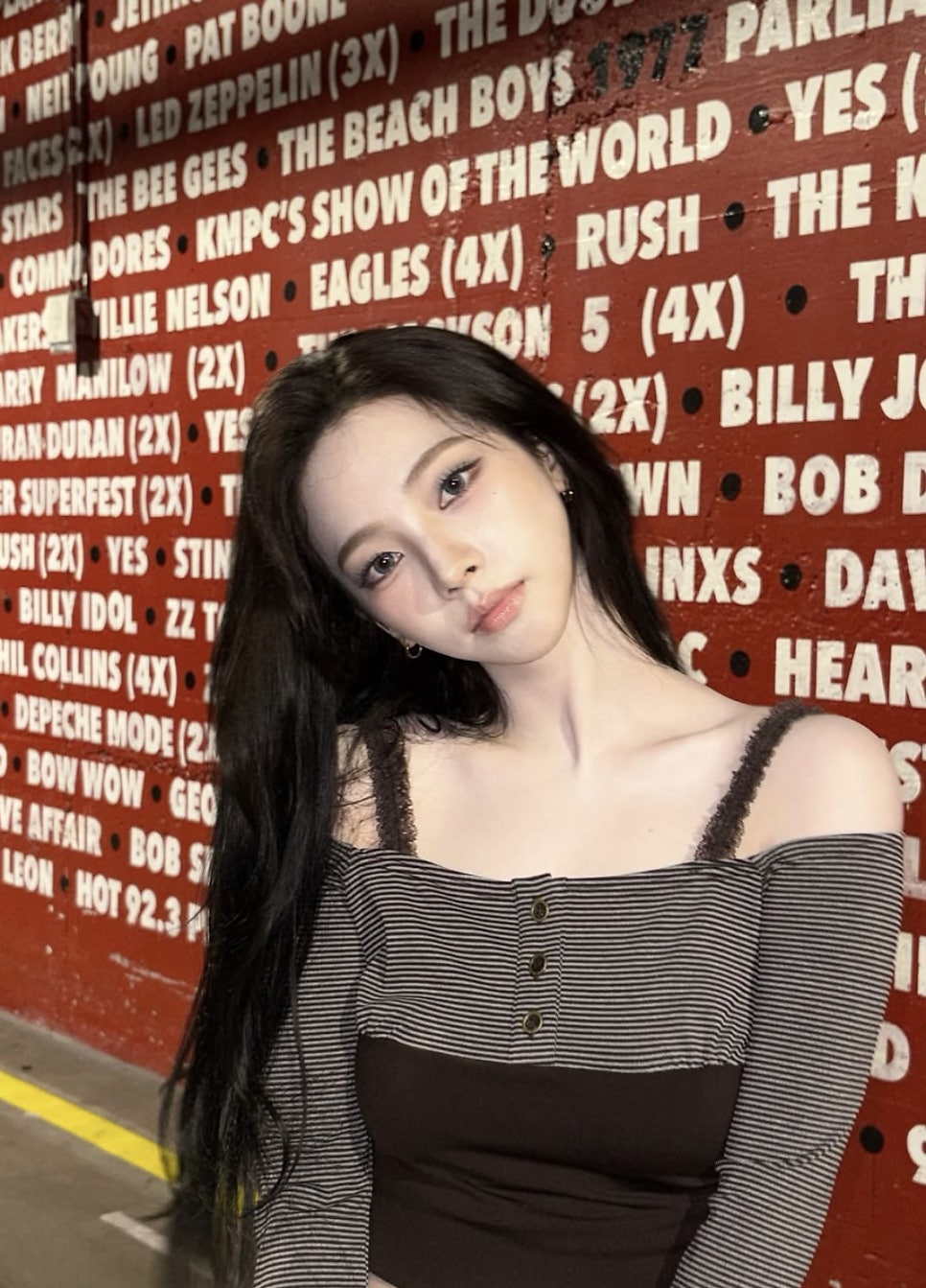 세 가지 아이템을 서로 다른 느낌으로 완벽히 소화해 내는 모습에서 카리나의 오프숄더 장인(!) 면모가 드러나기도 합니다.