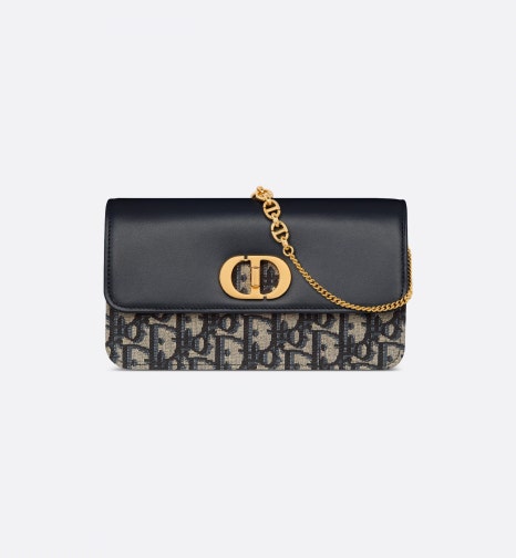 Miss Caro 체인 파우치 블루 Dior Oblique 자카드 & 스무스 송아지 가죽 | DIOR