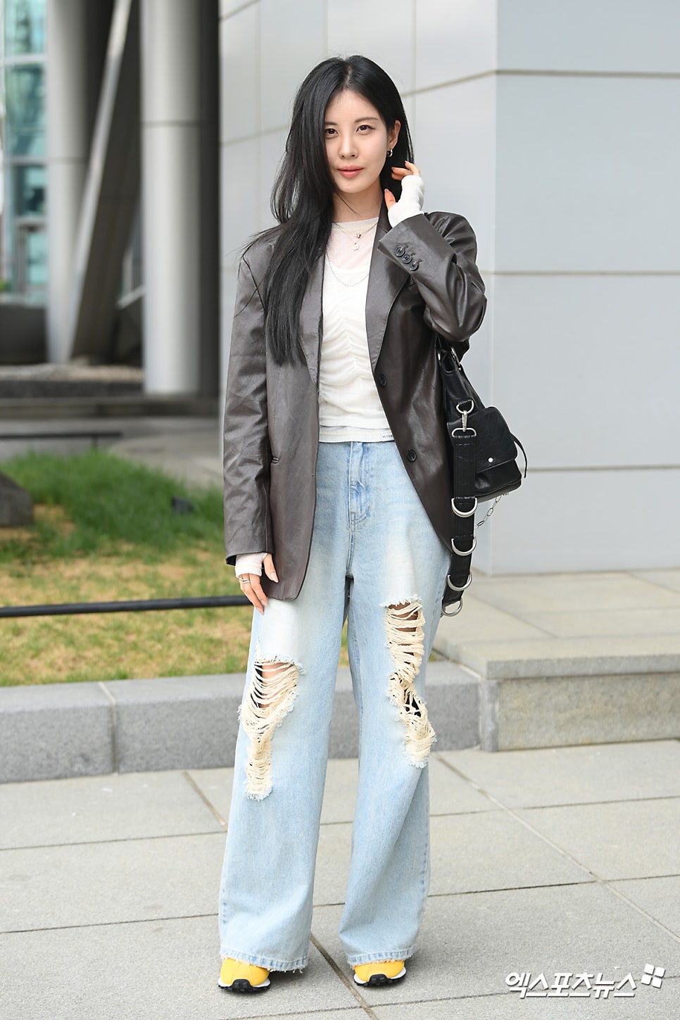 간만의 라디오 출근길 속 만난 서현은 보다 스타일리시한 모습으로 등장했습니다. 요즘처럼 일교차가 심한 봄 철 입기 좋은 브라운 컬러 레더 재킷에 화이트 티셔츠 그리고 연청 데님을 매치해 편안하면서도 힙한 출근룩을 완성했죠!