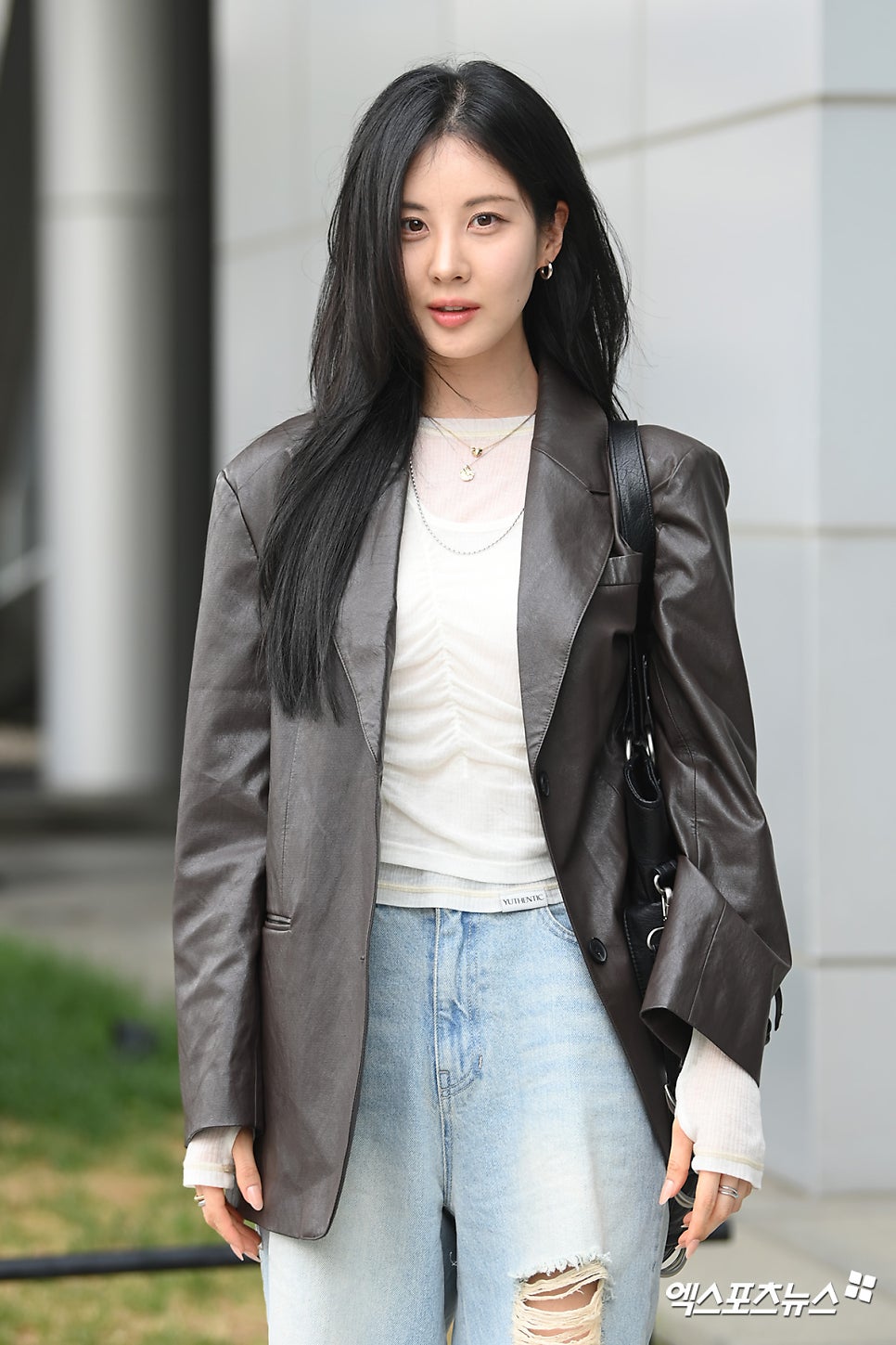 소녀시대 서현이 라디오 출근룩으로 선택한 레더 재킷은 랭앤루의 애나 레더 재킷입니다.