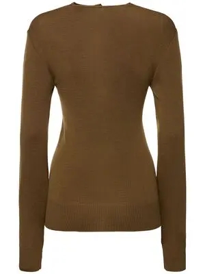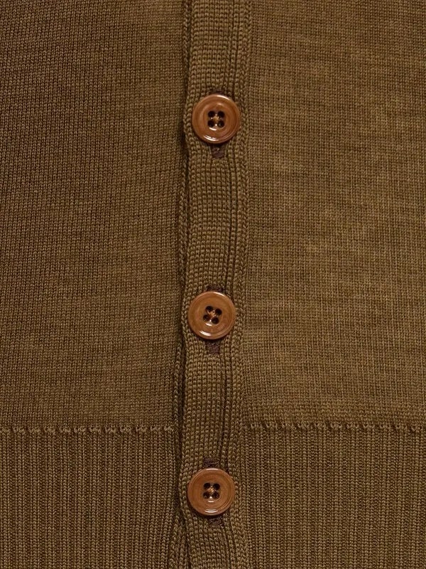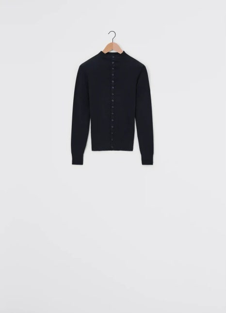 This Seamless Fitted Cardigan is made of fine merino wool with a soft and warm hand and a second skin feel, one of LEMAIRE's signatures. It is manufactured by EMO, a French textile clothing maker specialised in tubular knitwear. Its seamless construction e